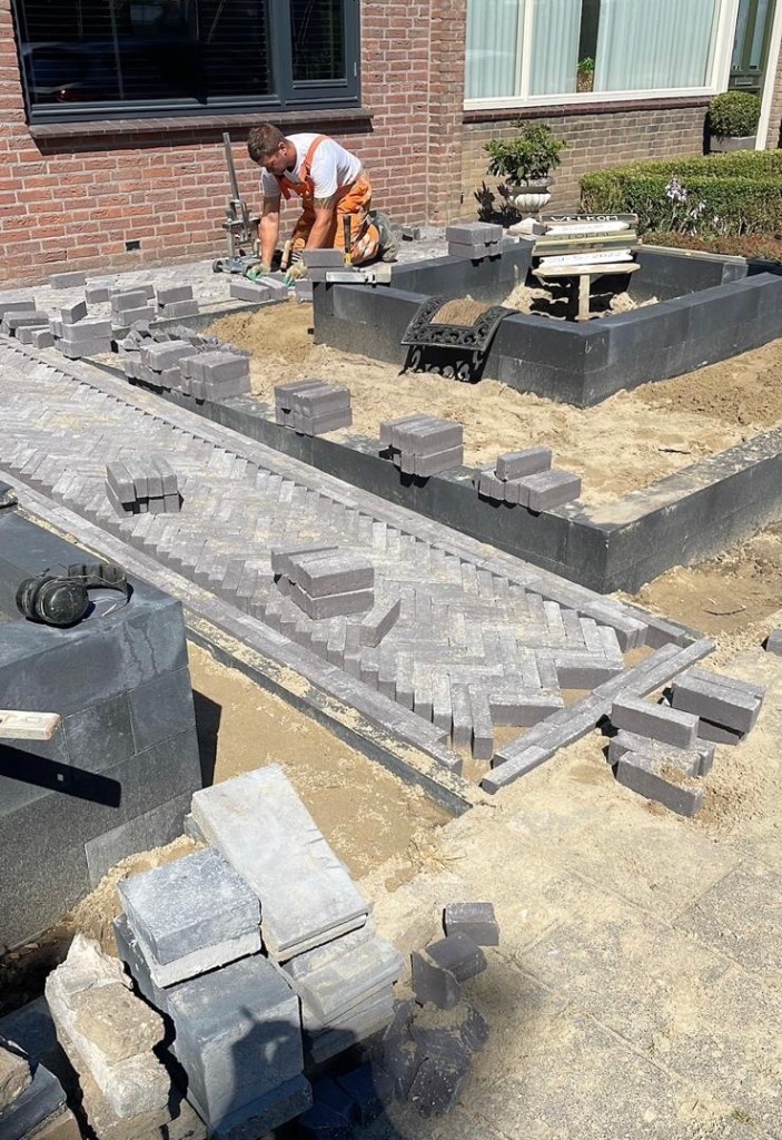 Betontegels – Gebakken klinkers waalformaat – Borders – Kunstgras